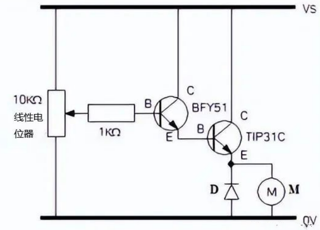 基于TIP31C三極管晶體管的應(yīng)用電路介紹TIP31C 應(yīng)用電路1、達(dá)林頓 TIP31C NPN 晶體管驅(qū)動(dòng)直流電機(jī)一般來(lái)說(shuō),電位器不能直接控制直流電機(jī)