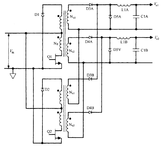 正激變換器拓?fù)涞幕竟ぷ髟斫诲e(cuò)正激變換器拓?fù)浠竟ぷ髟?、優(yōu)缺陷和輸出功率限制這種拓?fù)渲皇莾蓚€(gè)相同的單端正激變換器交替工作 (
