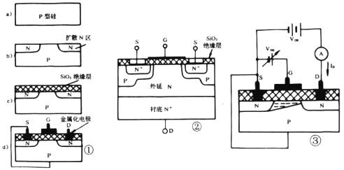 場效應(yīng)管TMOS,VMOSMOSFET構(gòu)造,從縱剖面來看,柵極(柵區(qū))、源極(源區(qū))、漏極(漏區(qū))大致排列在同不斷線上,這樣的構(gòu)造被稱為橫向溝道(